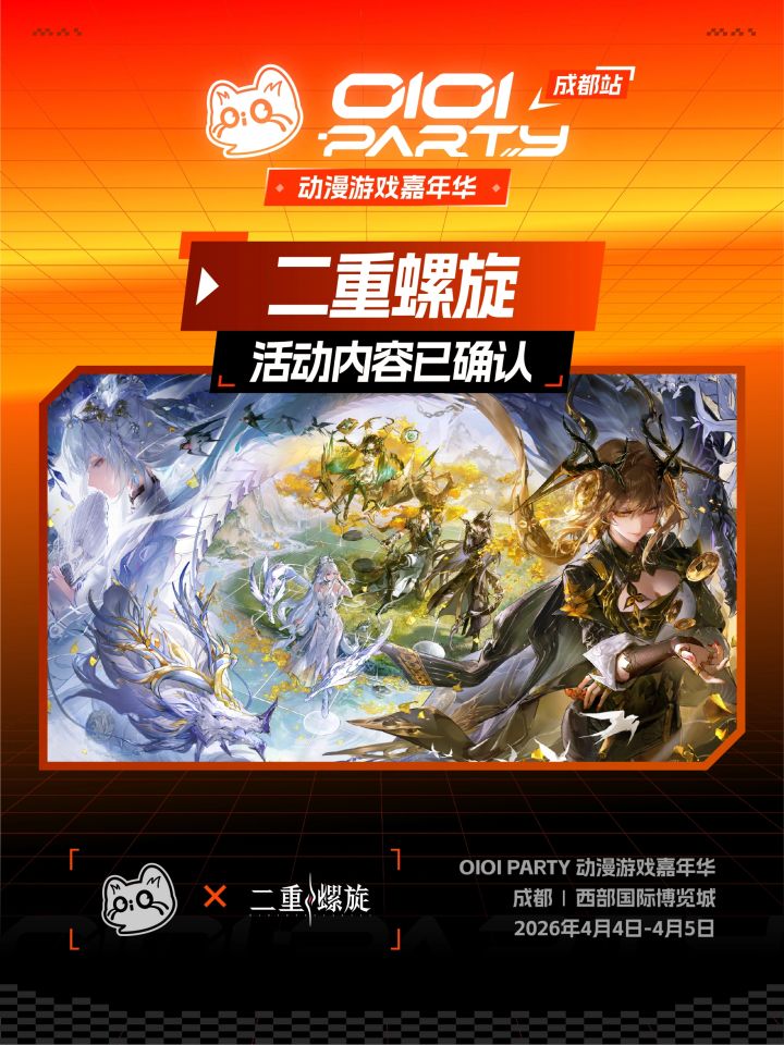 《二重螺旋》确认参展成都OiOi Party动漫游戏嘉年华,4月4日-5日在西部国际博览城举办。