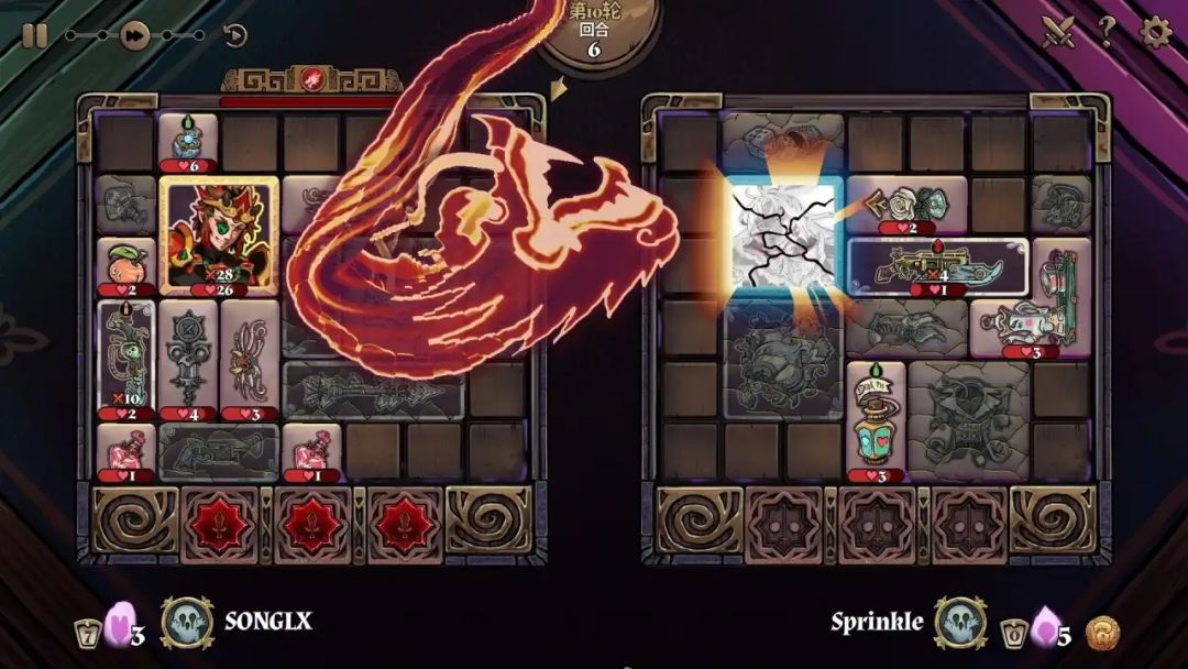 游戏的玩法非常简单,你只需要选好角色,并且将装备放在解锁的格子当中,然后就可以与对面战斗了。但是想要真正玩好这款游戏,却需要下不少功夫。