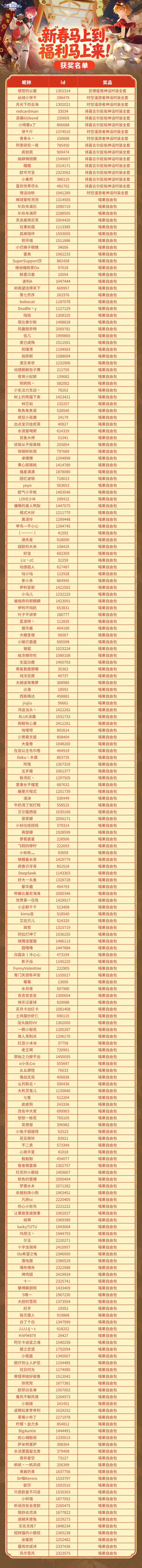 注:由于名单限制仅公布神话时装、喵果自由包、钻石自由包奖励获奖名单,如未在获奖名单内,具体以游戏内邮件发放为准哦!
