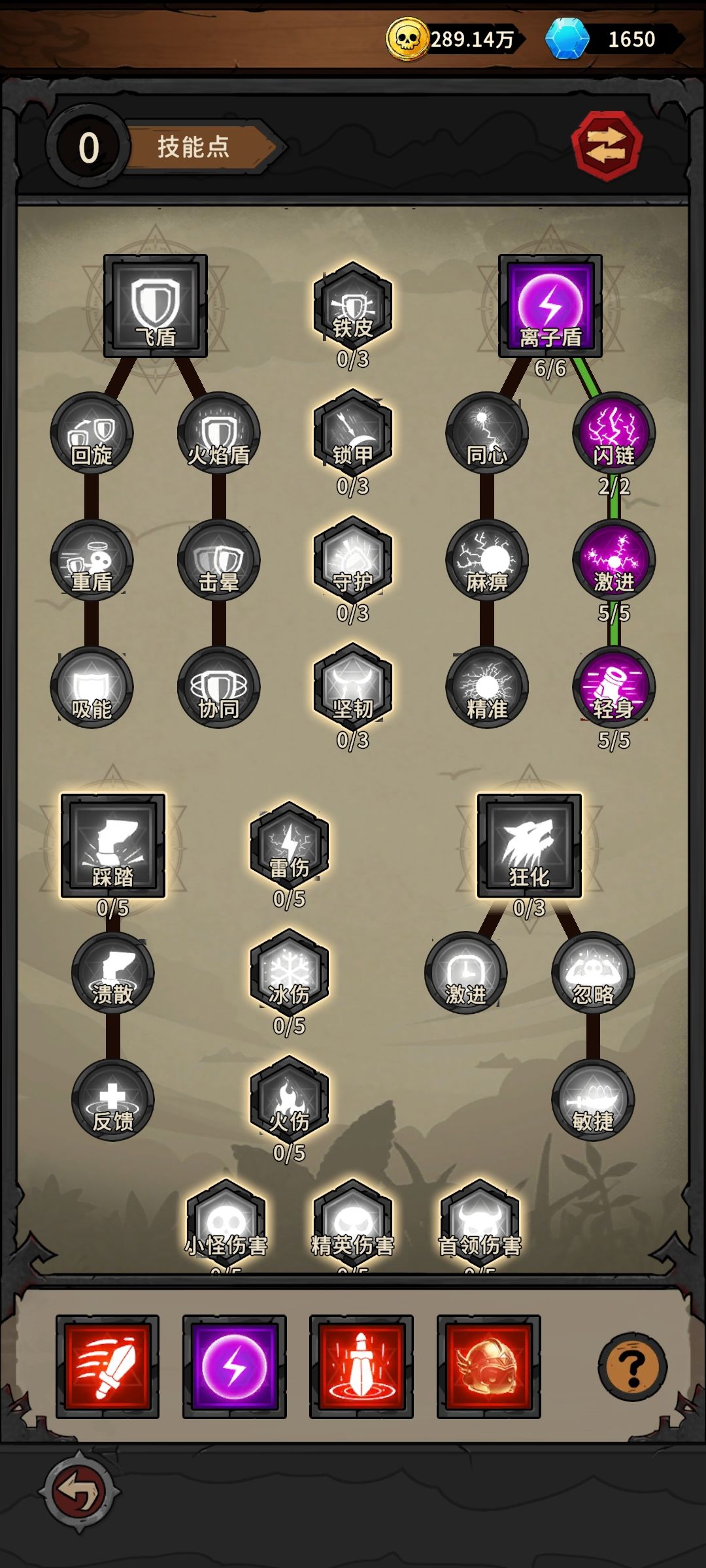 离子盾 全屏秒怪 开荒 冰剑冰盾冰伤 后期推图就雷伤+武器火伤 CD冷却50左右就够,多了衰减,55cd和66cd技能冷却相差0.2秒左右。暴击率可以局内叠到100%所以爆伤伤害最直接小怪精英boos通吃。后期初始速刷移速很重要,影响局内百分比加成,移速影响离子盾2秒内清怪进度条。游戏更新很慢,开服没几天,群里捡现成攻略路径,追赶不是问题。