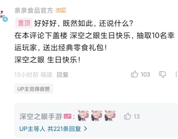 尤为亮眼的是,亲亲食品官方账号主动来到直面会视频评论区开展抽奖互动,以实际行动为《深空之眼》四周年助阵,成为游戏圈与品牌跨界互动的趣味一幕,也侧面印证本次周年庆的超高热度。