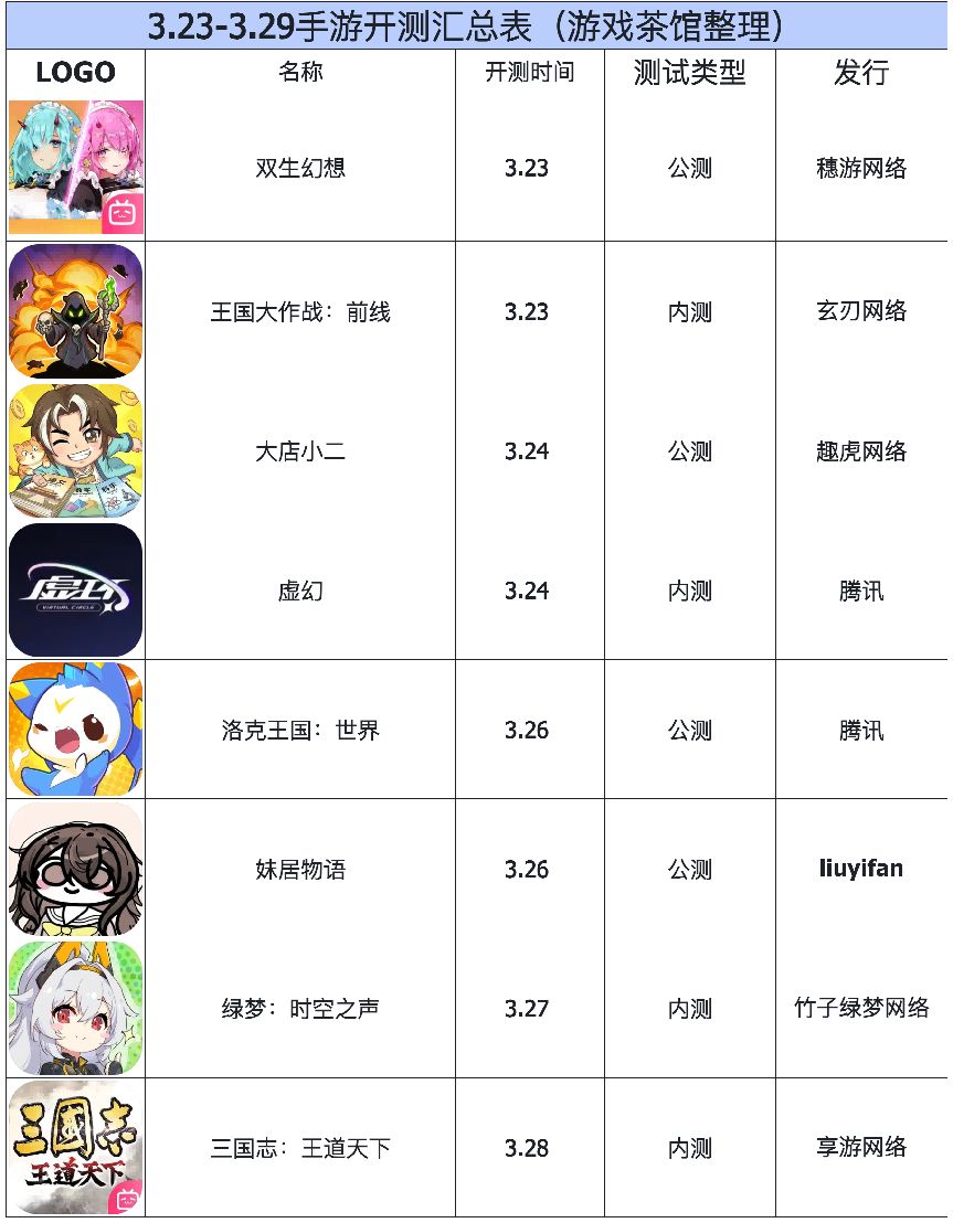 游戏茶馆整理了本周(3.23-3.29)即将上线的新游戏