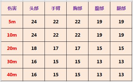 伤害:基础伤害42,在冲锋枪中属于中等偏高数值,近身战斗击中上半身5枪可以淘汰敌人,下半身6枪。