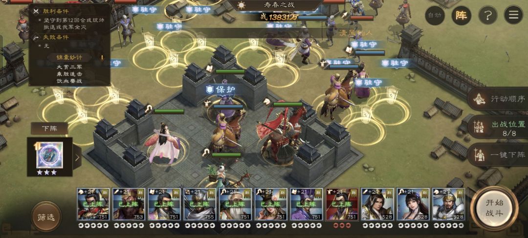 第一回合开始,李儒走上,其他都右边,李儒其实依靠反击就能轻松灭掉前锋,省一下技能CD,如果练度不够就老老实实丢技能。