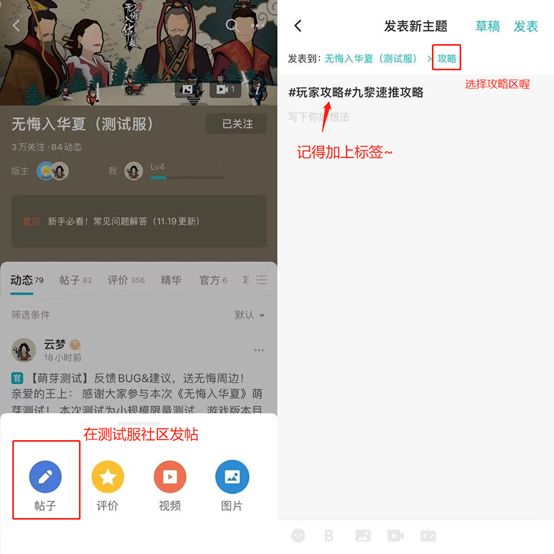 第二步:在标题带上#玩家攻略#