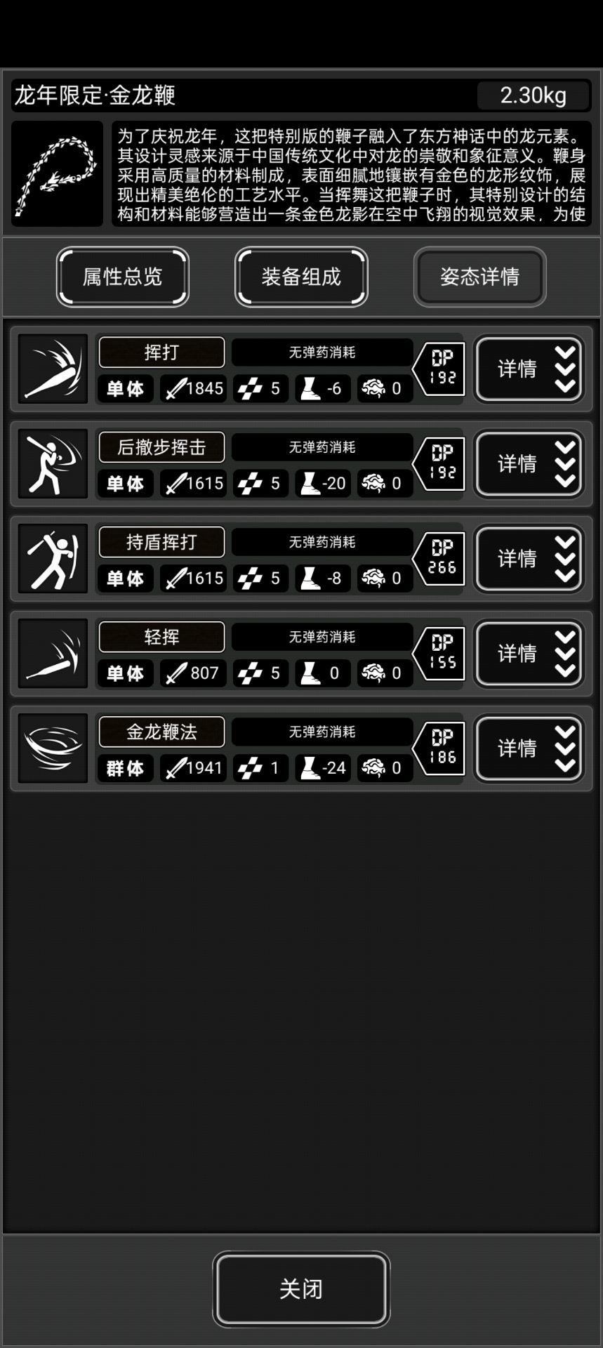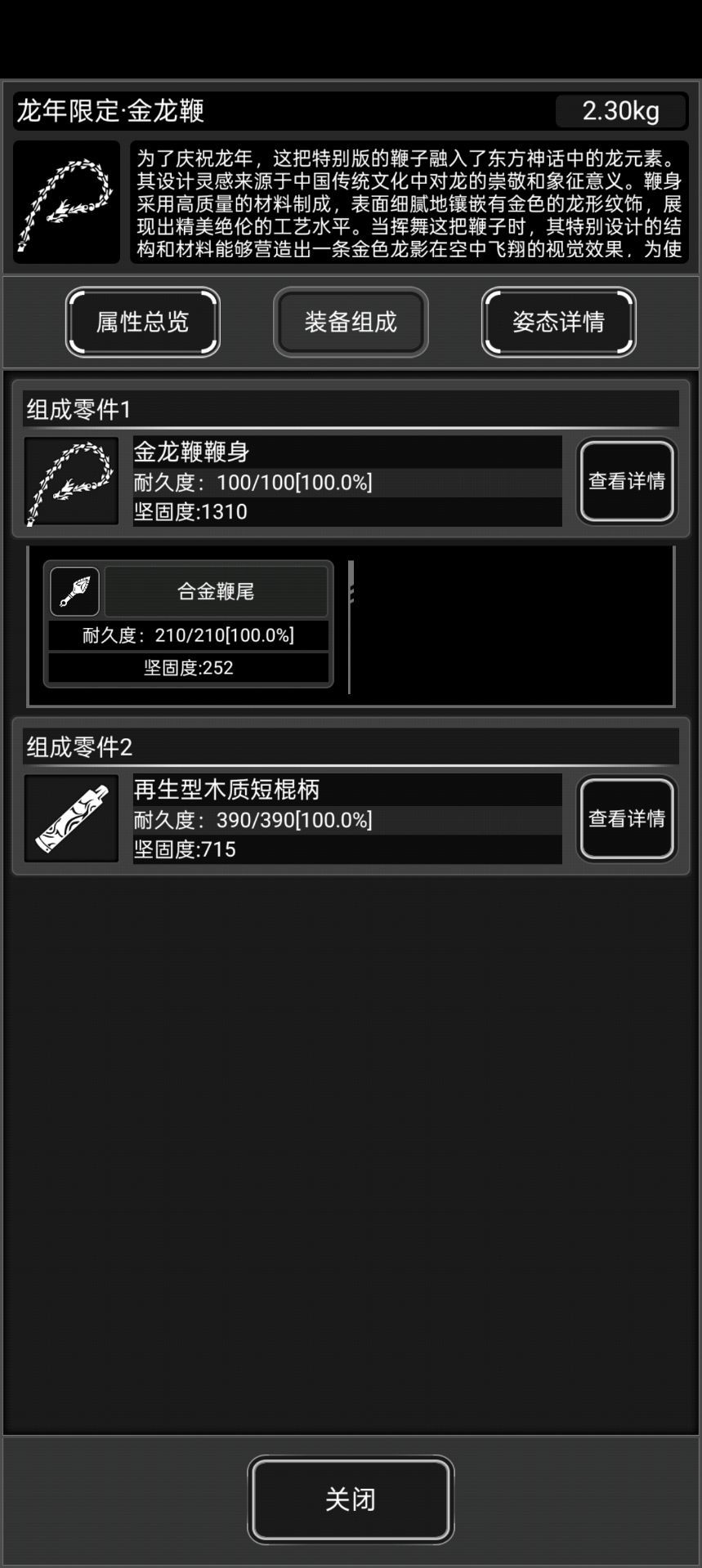 上面是三种满配年限鞭子的具体属性(虽然大部分属性都是程序员复制粘贴)