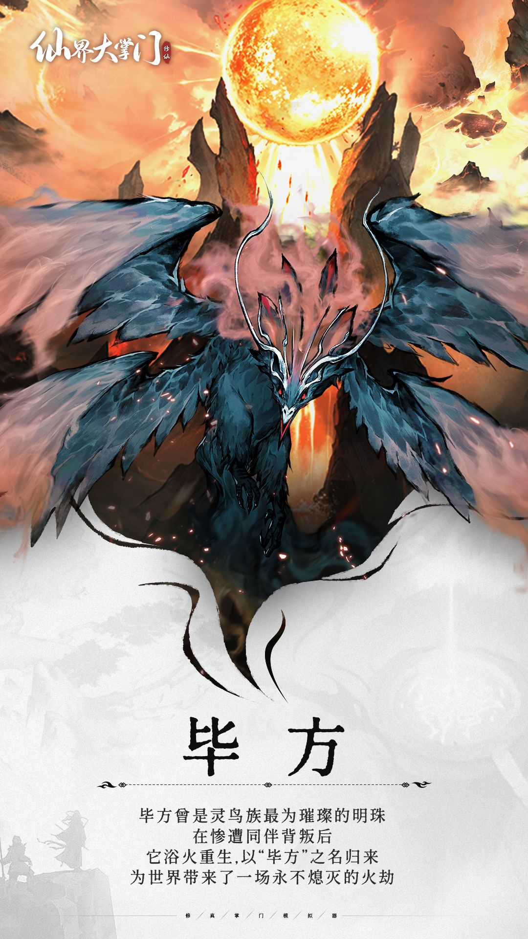 掌教大人说,毕方来自灵鸟族。这是一个以华羽与清歌闻名于世的族群,而毕方,曾是其中最为璀璨的明珠。他的单足并非缺陷,而是上古血脉的尊贵象征。他的歌喉能让百花提前绽放,羽翼流光溢彩,令日月黯然。