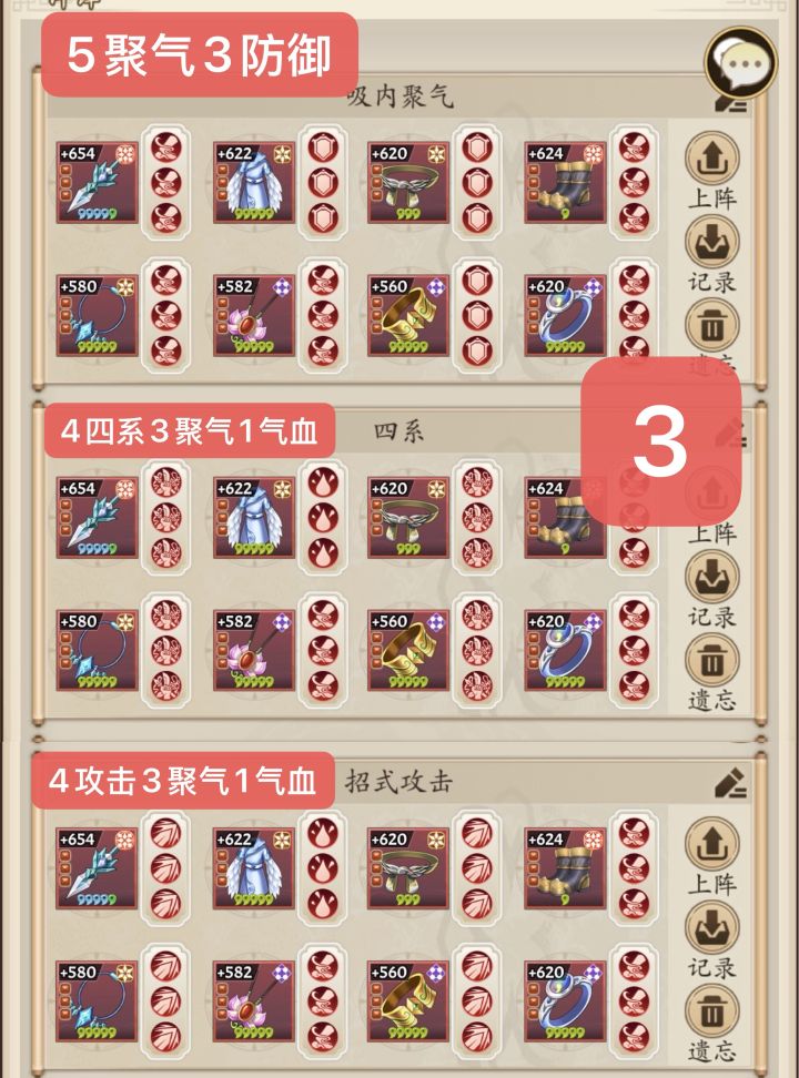 3.3 攻击套 4攻击3聚气1气血
