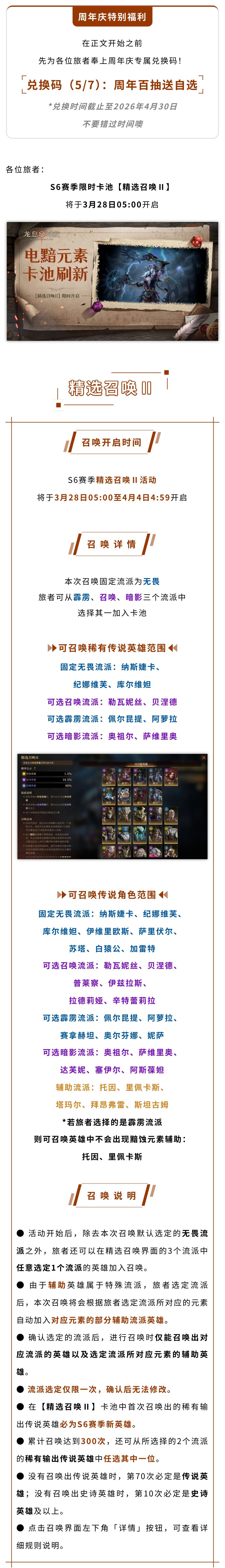 【周年福利】精选召唤Ⅱ丨电黯自选流派召唤限时开启