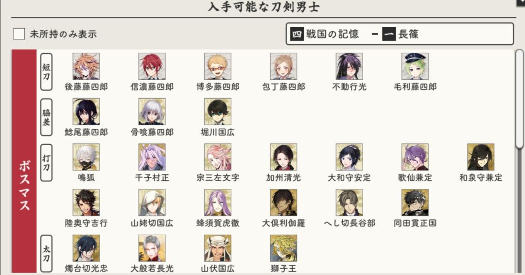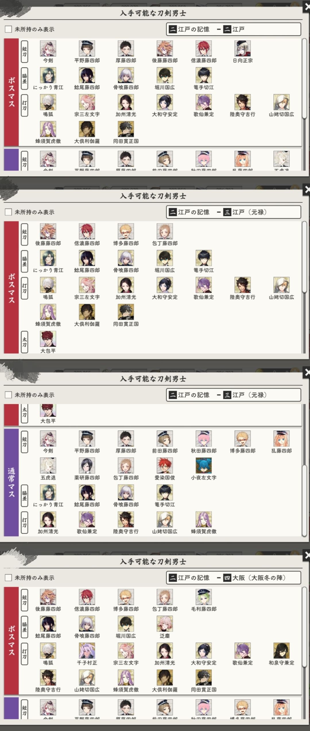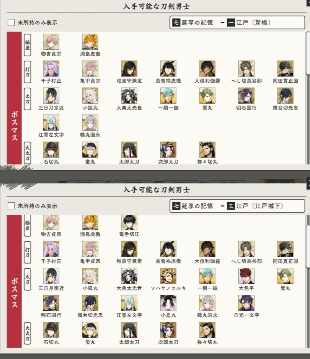 总体给没有初五掉落的战场都增加了初五 以下不再提及初始五刀 以及大部分战场都加了很多粟田口和打刀 以下有的后续没提但是都有