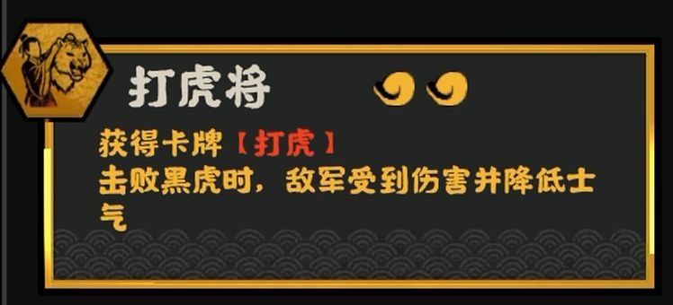 一政策“打虎将”:敌军受到伤害并降低士气。这是李存孝的主要输出手段。那老虎怎么来呢,一个是一政策给的卡牌“打虎”,可以为敌军召唤一只黑虎,还能返回牌库循环使用。