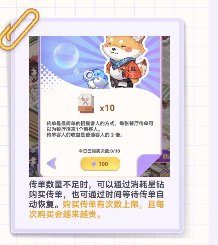 综上,影响收益的各项内容都给大佬们列出来了,剩下的就看大佬们自我发挥了,最后再补充几点,如果把以上buff都拉满的情况下,20分钟内可以制作约450道菜,记得备足传单,因为今天是大赛第一期,只能草草做个总结,后续根据情况再补充。