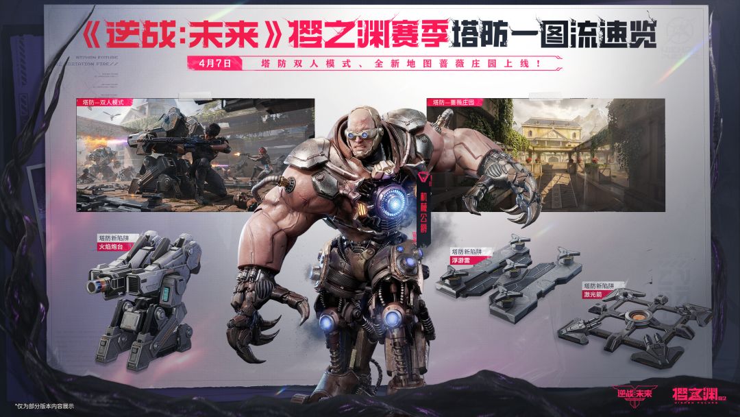 一图速览S2「樱之渊」赛季【塔防模式】新内容!双人塔防,经典地图蔷薇庄园将于4月7日正式上线,叫上游戏搭子一起过两招?