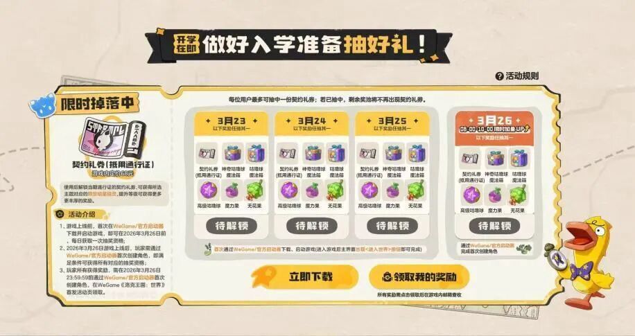 此次福利核心为68元契约礼券,可直接解锁当期赛季通行证,包含限定精灵、专属时装、养成资源等豪华奖励。玩家通过预下载与每日免费抽奖即可参与抽取,无需付费就能拿下付费档位全部内容,零氪党福利拉满。