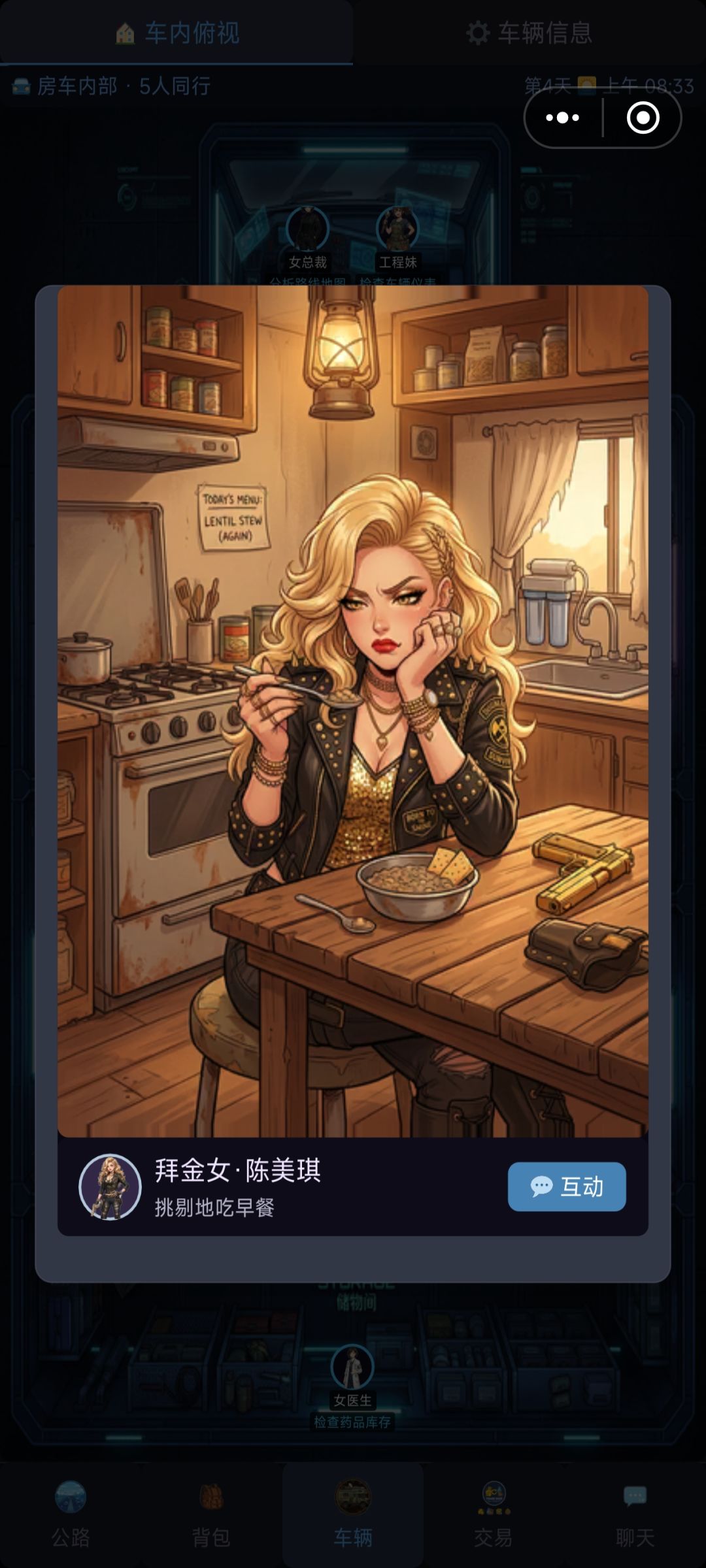2.车里页面重改升级,房车内部更加沉浸,角色会自己根据时间在车内做不同的事情,大部分还有生活照哦