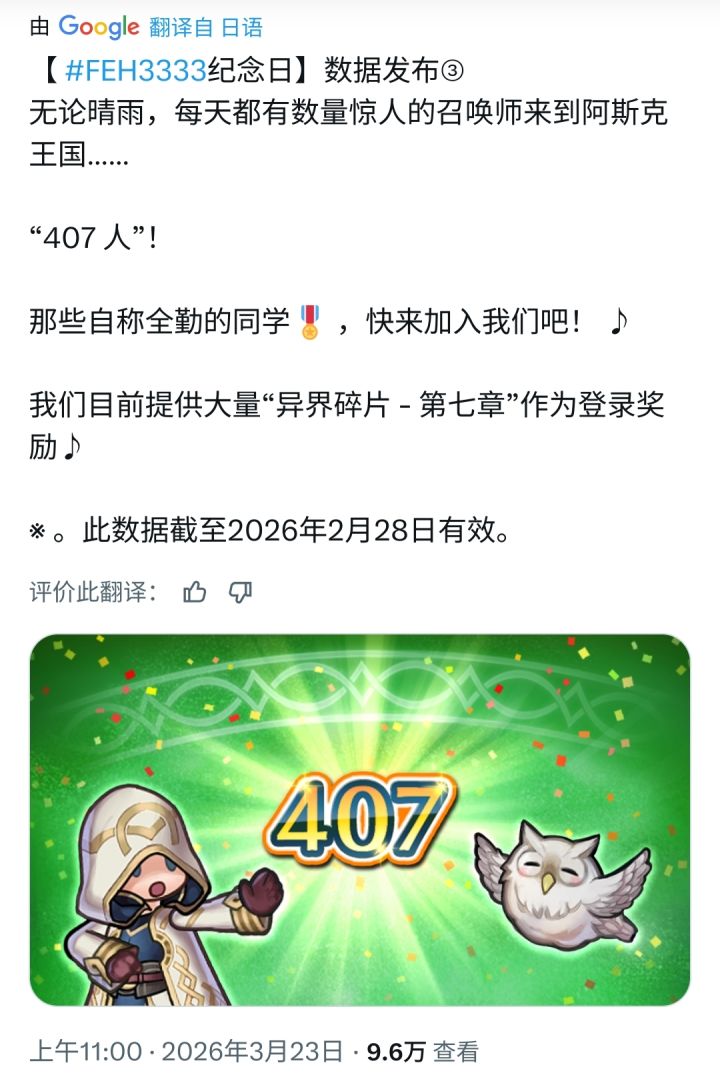 📊火焰纹章英雄九年全勤