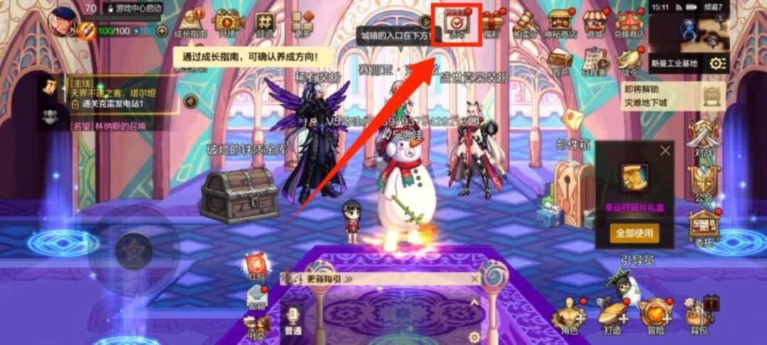 首先需要打开活动页面,活动页面位于城镇最上方,也就是上述箭头所在位置