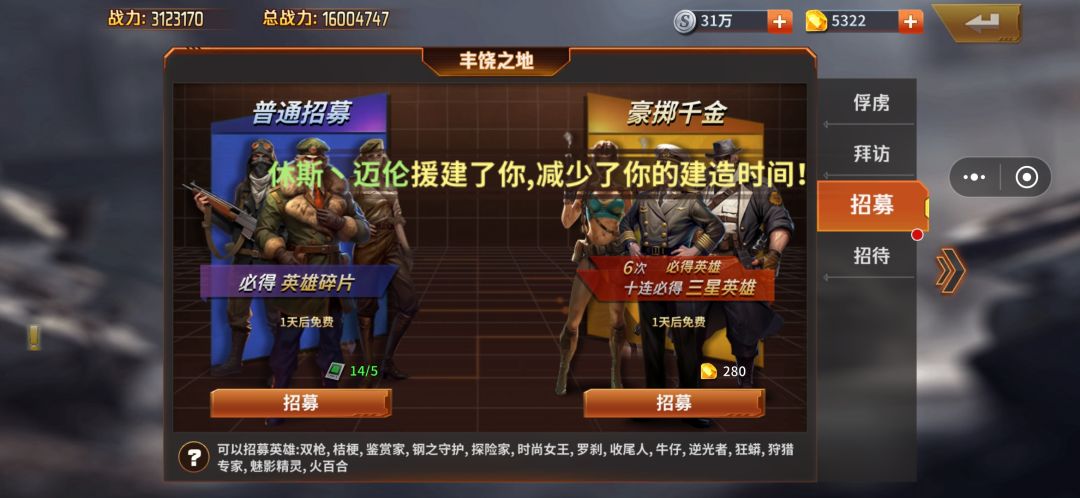 什么游戏对于零氪玩家来说,只有屯好资源才能有逆袭氪金大佬的时候,那我们今天来说一说一血敢死队里,怎么当好一只屯屯鼠。先从英雄说起,这个游戏英雄获取方式还是很多的,所以前期对于零氪玩家来说,个人认为还是谁星高用谁,最起码来五个五星英雄,对于零氪玩家来说两个英雄是必须要培养的,一个时尚女王还有个58级送的3s英雄,其他看各自阵容搭配,不会就直接抄我的阵容也行,我这套阵容最大的缺点是没有肉,纯靠输出,英雄的招募兑换方式如图,这边重点说下招待,招待是可以免费刷出三s英雄的,然后用免费招待我刷出过4个3s碎片,但是要注意这个碎片不是必出的,所以不要花太多钻石在招待上,都用免费的就好。英雄说完我们再来说说钻石的运用,作为屯屯鼠前期砖石资源相对获取要简单先,所以一定要抓好这个窗口期多去存钻,31级开国战首占据点第一名能拿到160钻,这个奖励只能领一次,拿完就算国战系统重置也无法重新再拿第二遍。有了钻石我们可以干嘛,我个人的理解是屯到15000钻石,要不买限时活动的飞机,买了飞机可以提升你更多的科技水平,涨所有英雄的战力,要不就是抽英雄,听官方说法是15000钻可以抽出一个3s,这里画个重点千万不要去图五里面抽3s不划算,一定要在图9有英雄招募活动的时候抽,能获取大量资源,这个活动一般开服第7天会出,再右上角可以看到。钻石用法说完我们在说下如何用好自己手头的资源,首先结盟时候要找两个能长期完的盟友,这样基地成长能快点,从而收更多的资源,然后就是如图一左下角,每天都会有掉落翻倍,每天不一样如果能屯好资源,掉落翻倍时候使用,那是非常不错的,但是提示下最少55级以后再囤资源,不然等级拉的太大,我也是练到60级的时候才想到可以这样玩的,以上就是个人对零氪这款游戏的一点心得,希望可以帮到新入坑的玩家,谢谢。#一血敢死队游戏攻略 服务器:黄金海岸 玩家姓名:战魂战魄 UID:39838