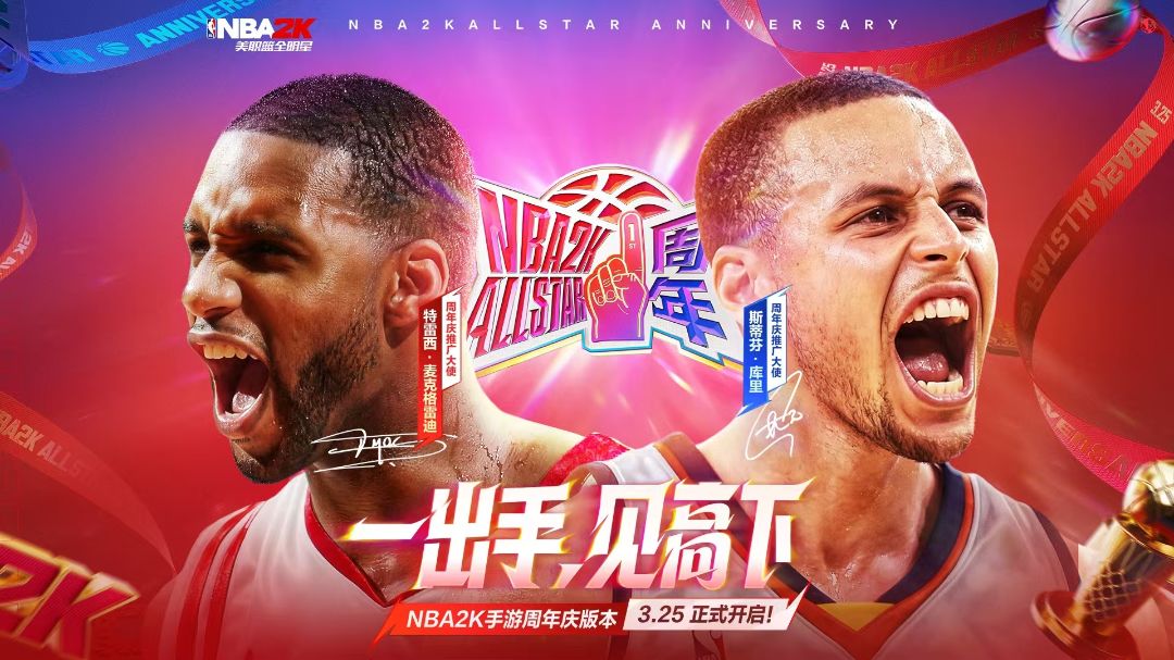 各位全明星们,2K正统手游《NBA2K All Star》(美职篮全明星)一周年庆典已经正式开启!周年庆版本双代言人TMAC与库里正式加盟美职篮全明星!