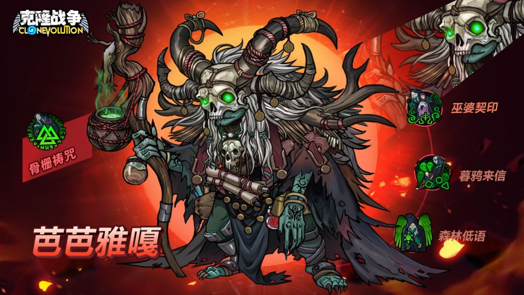 土系防守英雄,普攻能够将敌方增益转化为负面效果,怒气技能可以给敌方附加蛊毒Buff,五层时引爆造成伤害并转化为不可驱散的深度蛊毒,此时每有一个dot,降低自身一定攻击。并给自己和相邻单位附加毒性皮肤,被攻击有概率附加蛊毒并提高反伤。