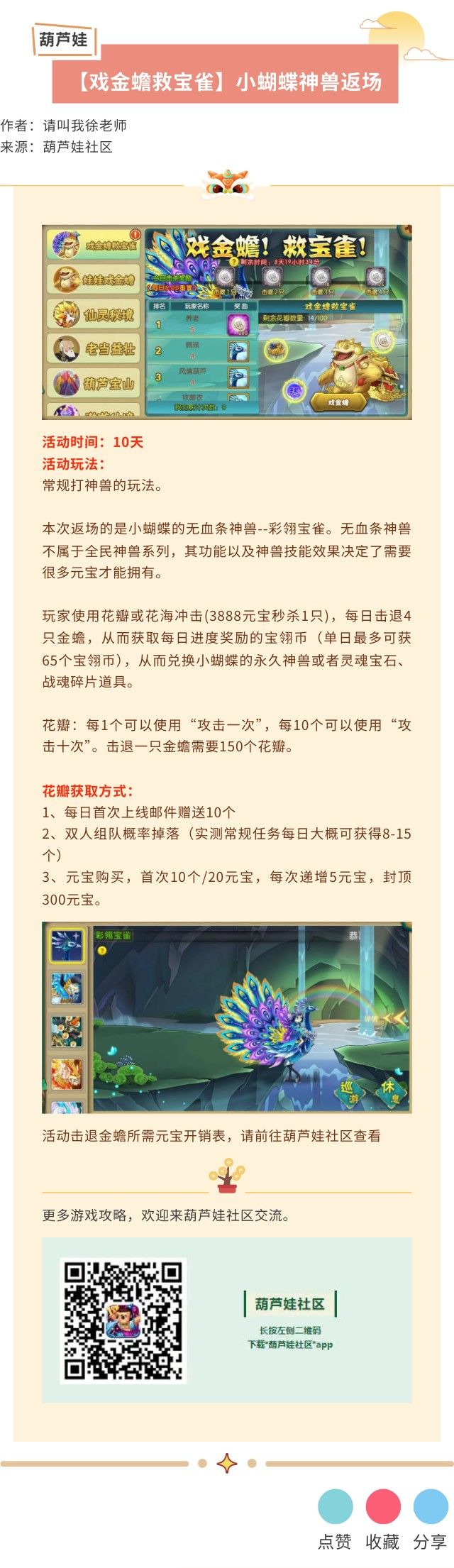 【葫芦娃】小蝴蝶神兽活动-戏金蟾救宝雀攻略