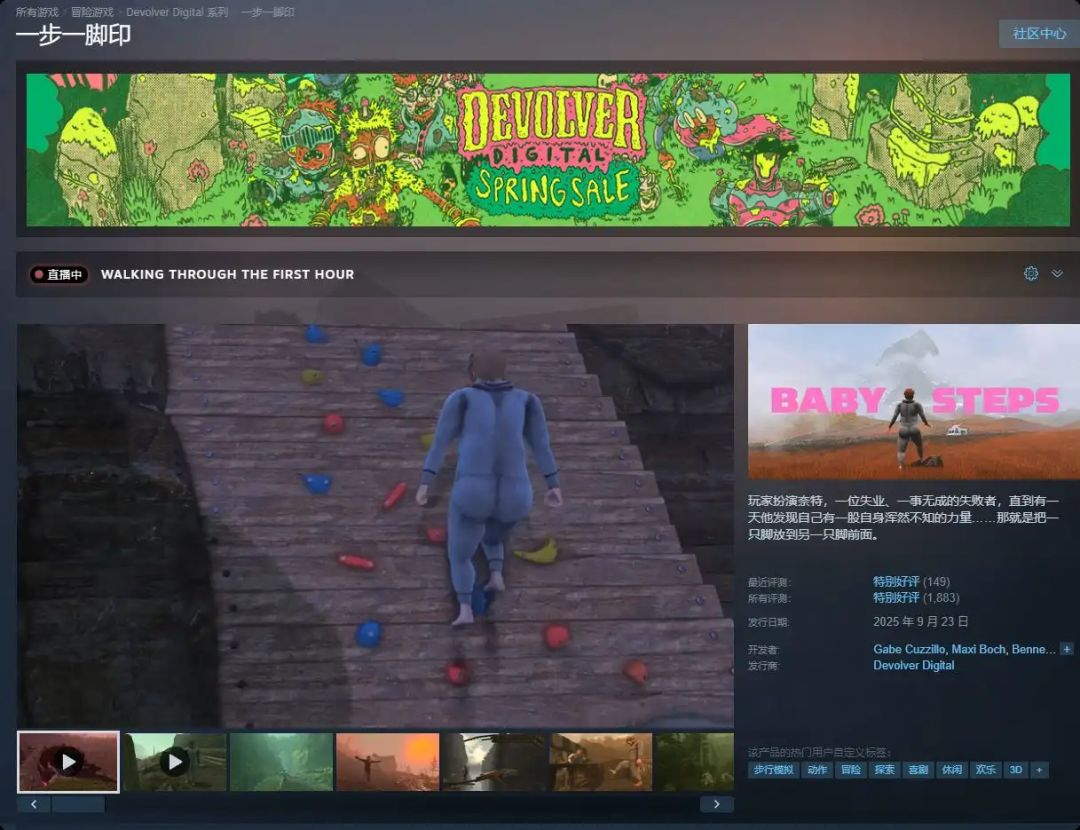 《一步一脚印》可谓是通过这个简单的游戏名字就清晰直达地告诉了玩家其核心玩法,那就是真正的、纯粹的步行模拟器。玩家将扮演一个意外穿越到未知世界的油腻Loser+内向宅男,醒来后就开始漫漫长路的徒步之旅。但是主角迈出的每一个步伐都需要玩家的手动操作,而想要不摔倒就必须时刻注意地形、角度、力度以及方位等等。虽然主角能做到百折不挠,从哪摔倒就从哪站起来,但在高低多变的地形中穿行也很容易“一失足成千古恨”。