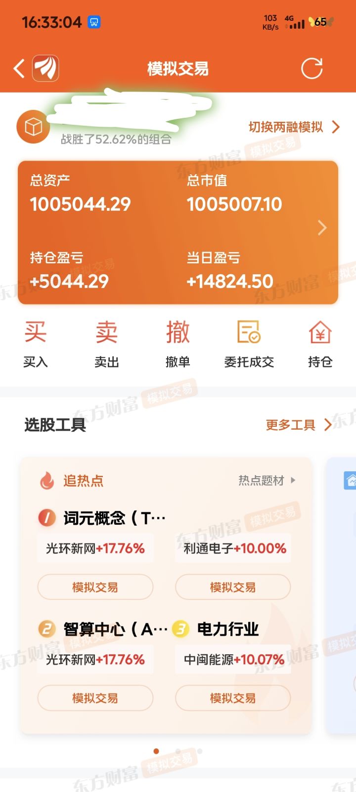 东方财富软件里面有个模拟炒股。