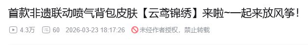 据悉这次的非遗联动对象为潍坊风筝,推出皮肤对象为喷气背包