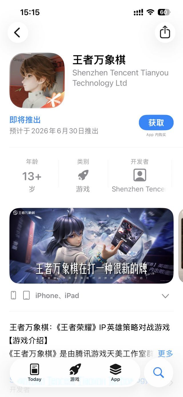 据苹果商店页面显示,游戏预计2026年6月30日推出,这一时间节点被玩家们解读为游戏公测在即