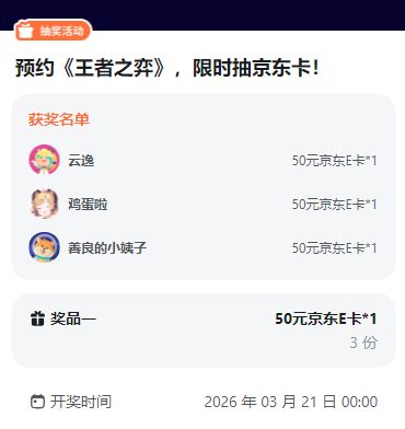 【获奖公示】预约《王者之弈》,限时抽京东卡活动获奖名单公示