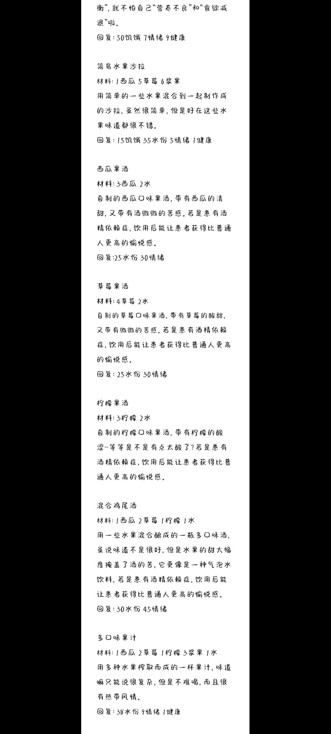 数值可能写的不够好,我是按照现实一些去写的,活下去里的部分食品总感觉数值不太对