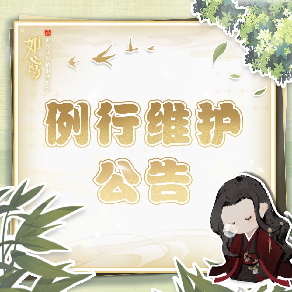 为了殿下更好的游戏体验,并保证游戏的正常运行,我们将在近期进行游戏的例行维护更新。维护时间内,殿下将无法登录游戏,请殿下悉知。