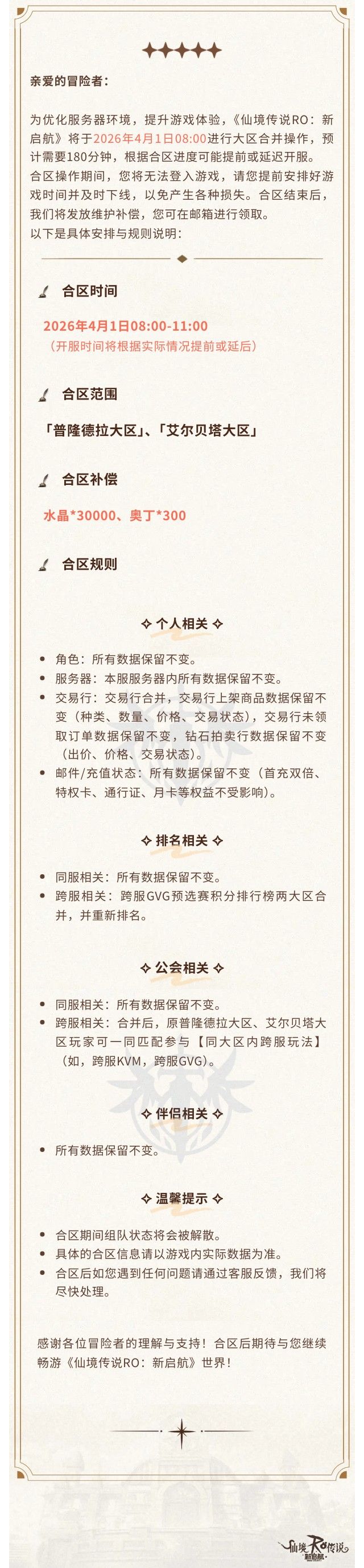 合区公告 | 4月1日大区合并公告