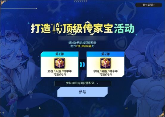 - 参与活动可定制个性化装备,完成任务可领取活动点数,进行装备强化,最终制作出个性化装备!