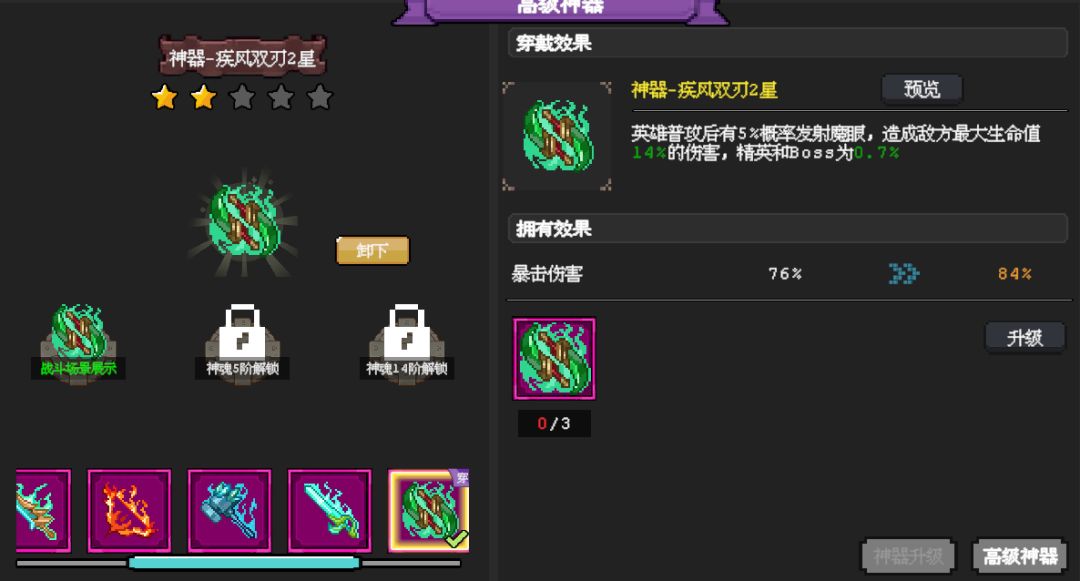 图1 核心道具之 魔眼神器(疾风双刃),未升级版本伤害为10%/0.5%