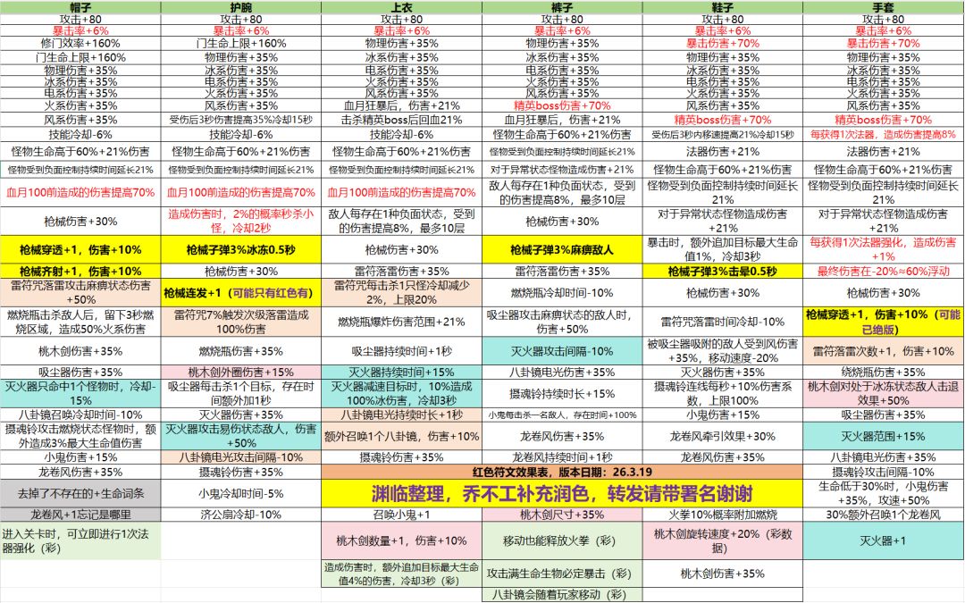 以下符文加成的数字,绝大多数是红、个别是彩,请玩家自行甄别。另外文中有不少未实测、主观判断性内容,且游戏的版本也尚不完善,故此稿仅为初版,后续将会慢慢更新。