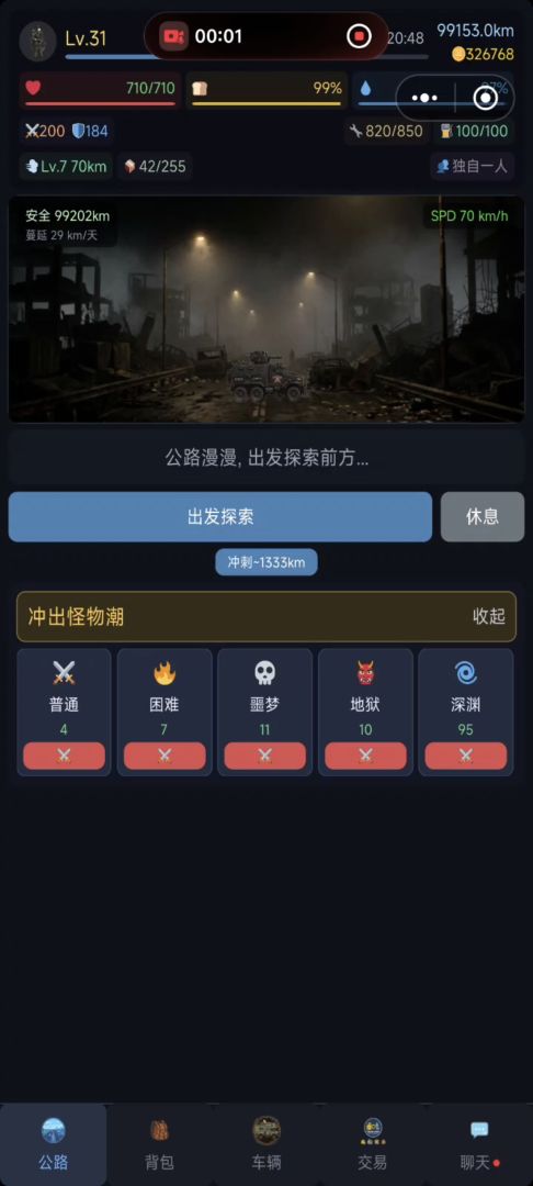 买一堆大桶汽油大维修箱,冲刺然后加油修车,循环,没钱就去20级怪物潮进货