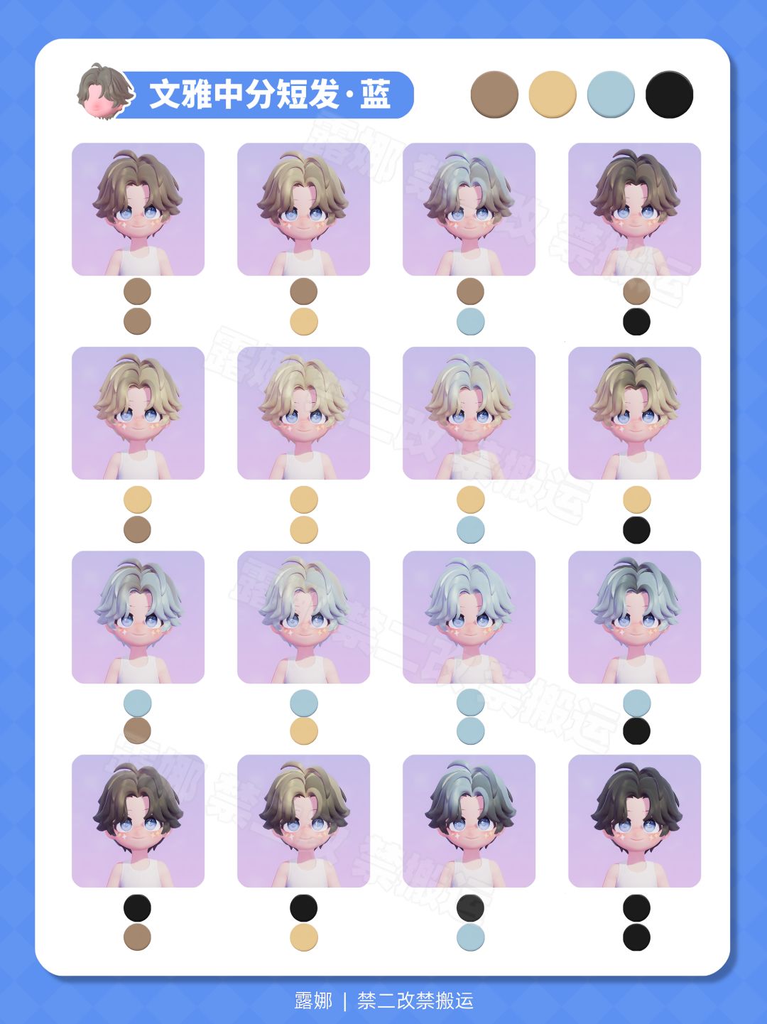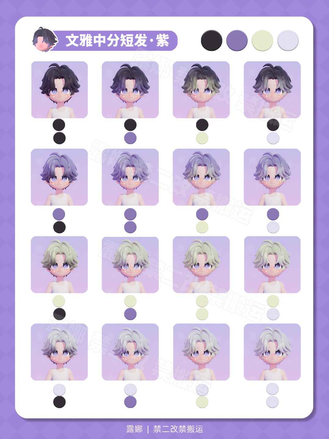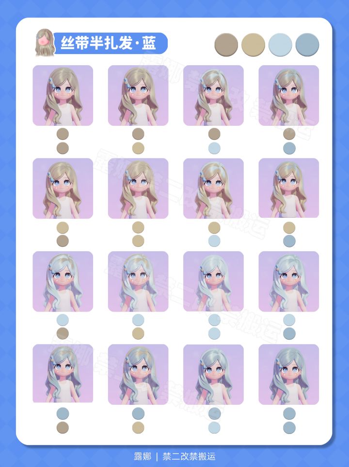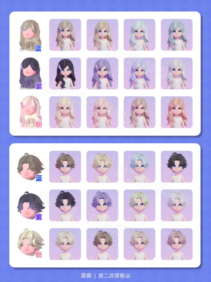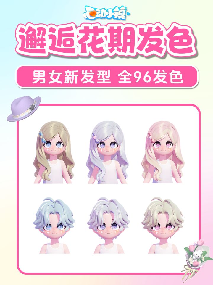 全96染色预览 选择困难症的看过来 你更喜欢哪个颜色呢? 风物奇珍/通票卡池 新发型 淡雅丝带半扎发(女) 文雅中分短发(男)