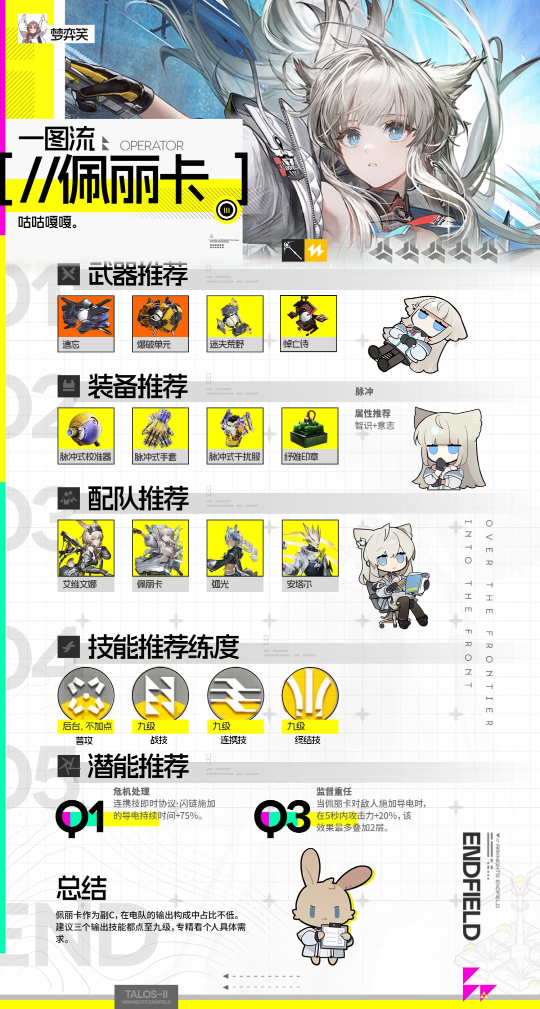 这个版本佩丽卡选择也更加丰富,可以用新的动火用堆叠源石技艺强度,但是测算下来和图中脉冲套源石技艺强度基本没有差距,可以不用特意更换。