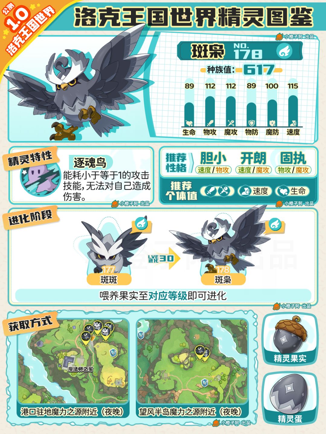 这是橙子第一篇《洛克王国:世界》公测精灵图鉴攻略。整体内容是按照精灵编号去发,方便大家查询,由于每篇文章最多放18张图,因此这次是133电企鹅到178斑枭的精灵图鉴,精灵分别是: