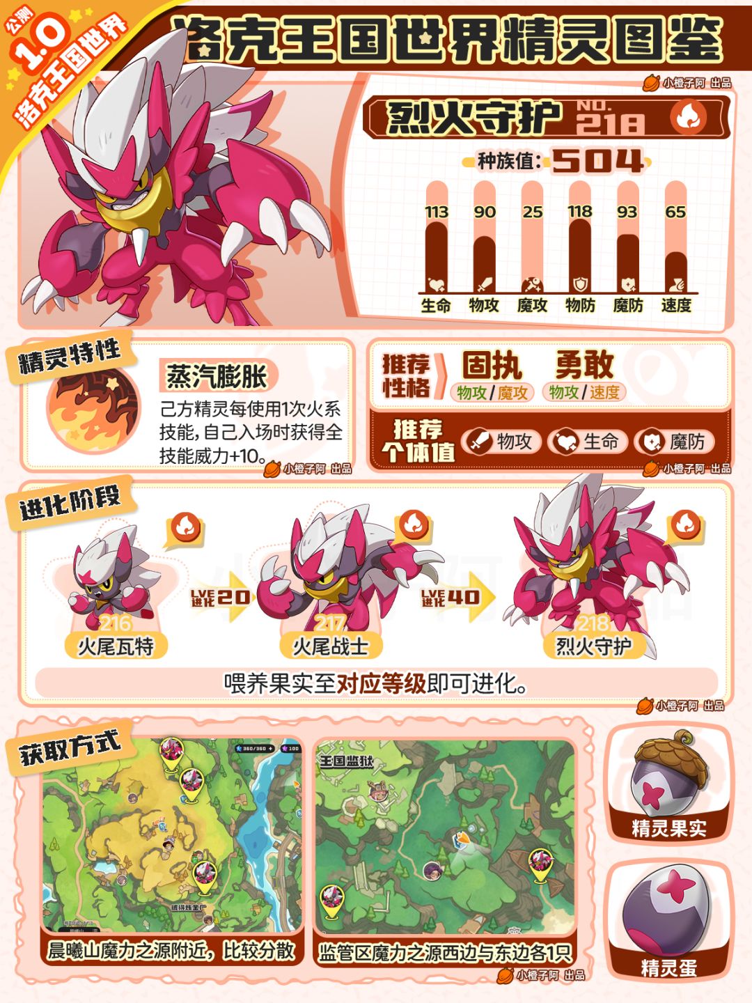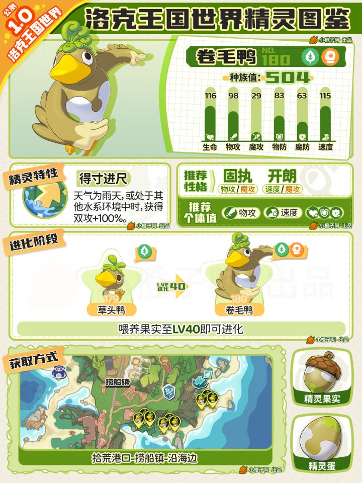 这是橙子第一篇《洛克王国:世界》公测精灵图鉴攻略。整体内容是按照精灵编号去发,方便大家查询,由于每篇文章最多放18张图,因此这次是180卷毛鸭到218烈火守护的精灵图鉴,精灵分别是: