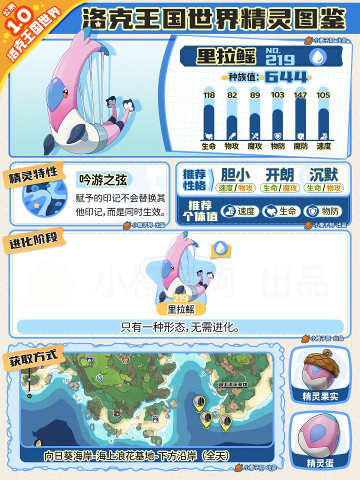 这是橙子第一篇《洛克王国:世界》公测精灵图鉴攻略。整体内容是按照精灵编号去发,方便大家查询,由于每篇文章最多放18张图,因此这次是219里拉鳐到262帕帕斯卡的精灵图鉴,精灵分别是:
