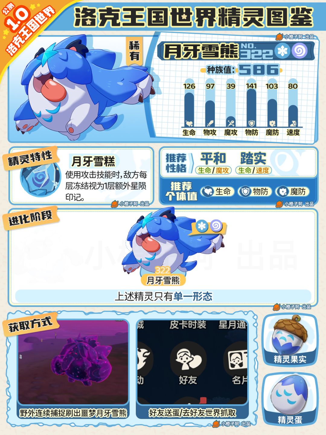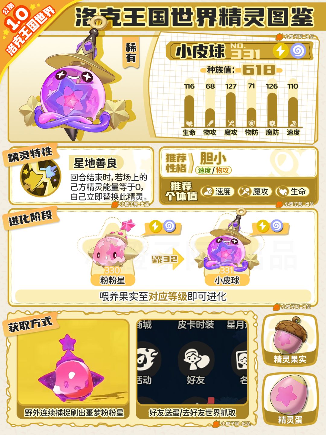 ②图鉴性格、个体值并不是唯一,由于精灵配队多种多样,推荐的性格与个体值会出现差别,有可能橙子图鉴中并没有出现,小伙伴同样可在评论区提出来,橙子会根据现实情况进行修正。