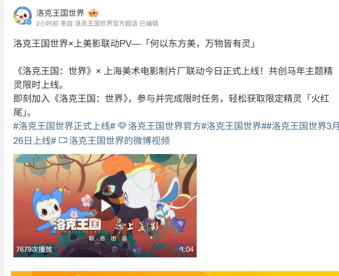 3月26日公测首日,腾讯不仅掏出了QQ联动,更联手国漫泰斗上海美术电影制片厂,发布了名为「何以东方美,万物皆有灵」的重磅联动PV。这次跨界合作不仅是情怀的碰撞,更是《洛克王国:世界》在开放世界美术风格上的一次国风尝试。