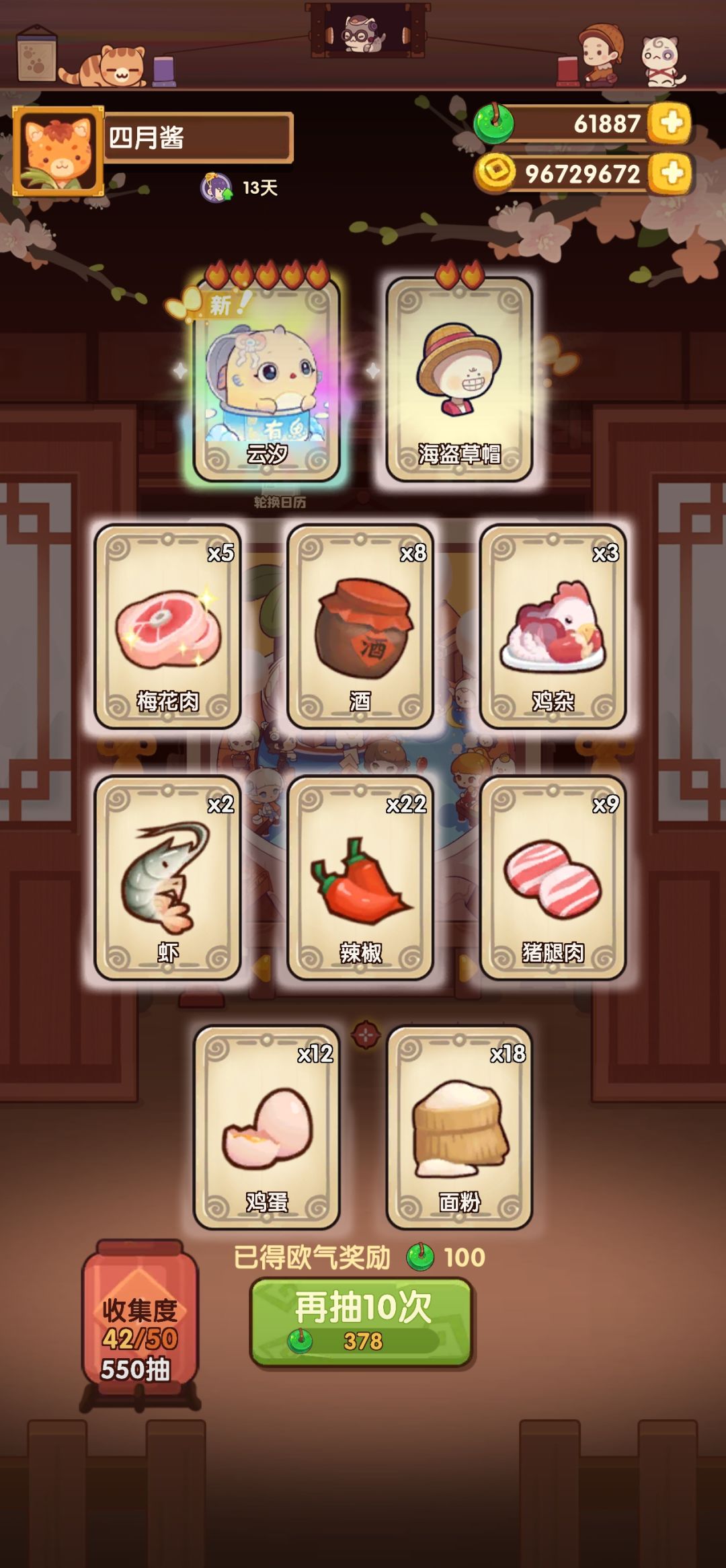0氪没买月卡但买了几个礼包厨。