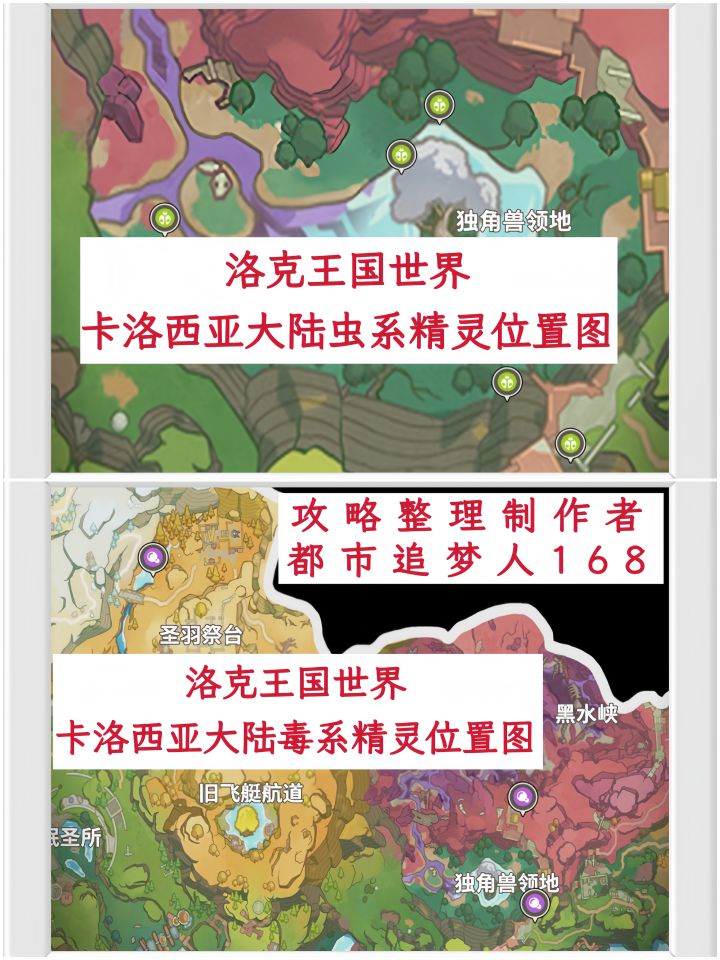 5:图三上图洛克王国世界卡洛西亚大陆虫系精灵位置图。