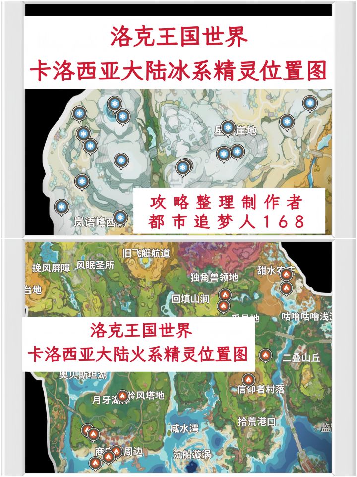 3:图二上图洛克王国世界卡洛西亚大陆冰系精灵位置图。