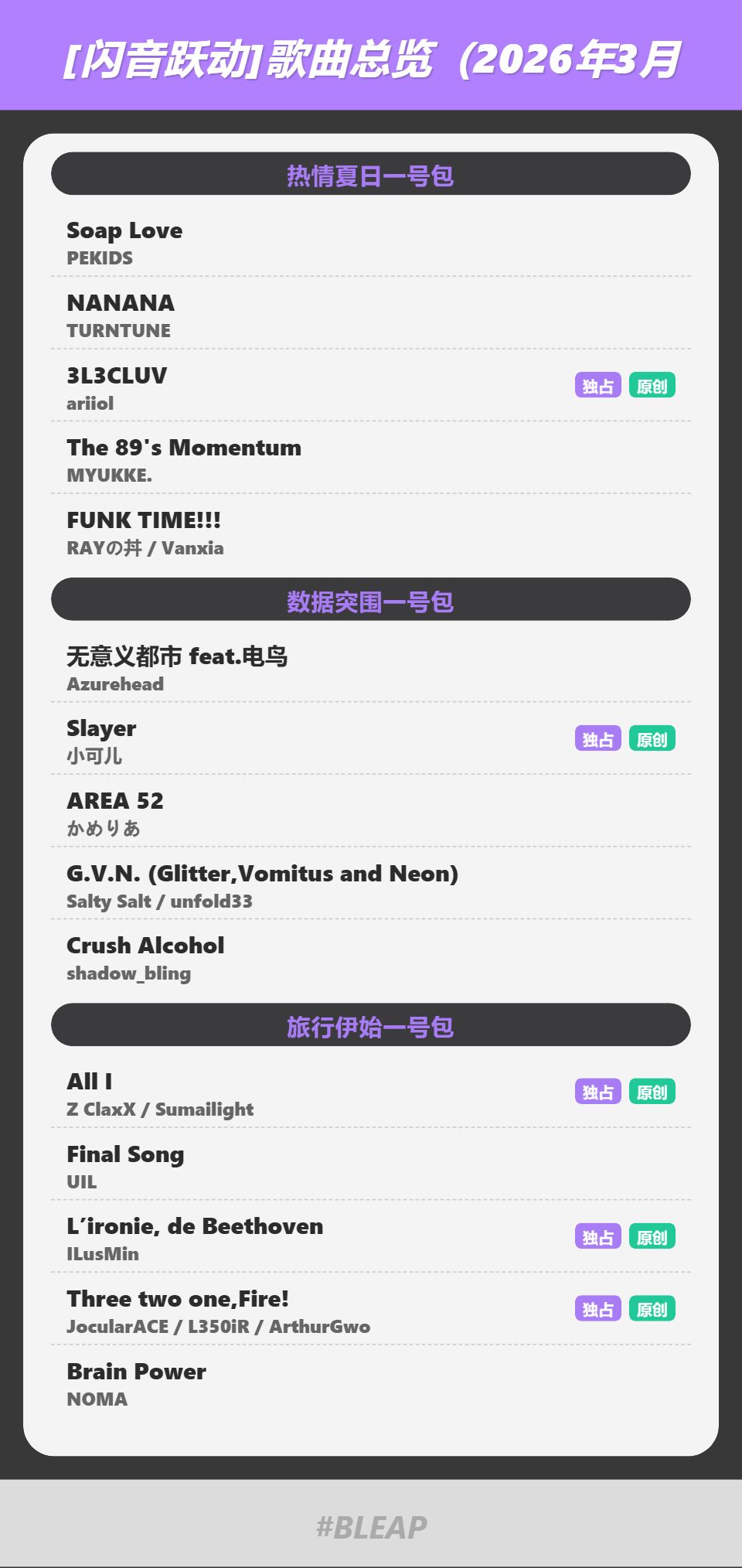 各位闪动人们,大家好!截至2026年3月,我们在《Bleap 闪音跃动》中收录的歌曲总数已经正式突破100首大关!