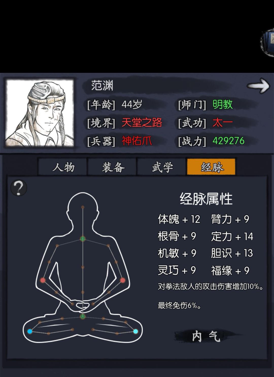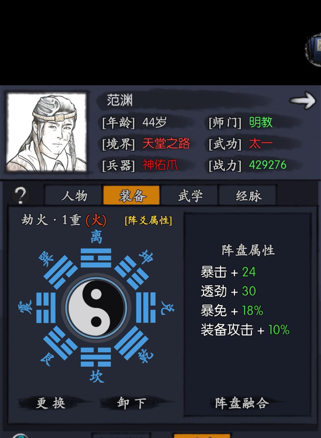 4.专武和阵盘也是选择很多,大家也就看个乐子吧。内气方面优先调和武伤和透高的吧,双三合加另外两个看自己情况来定,看你走哪个流派了。阴丹是没有争议的选择。