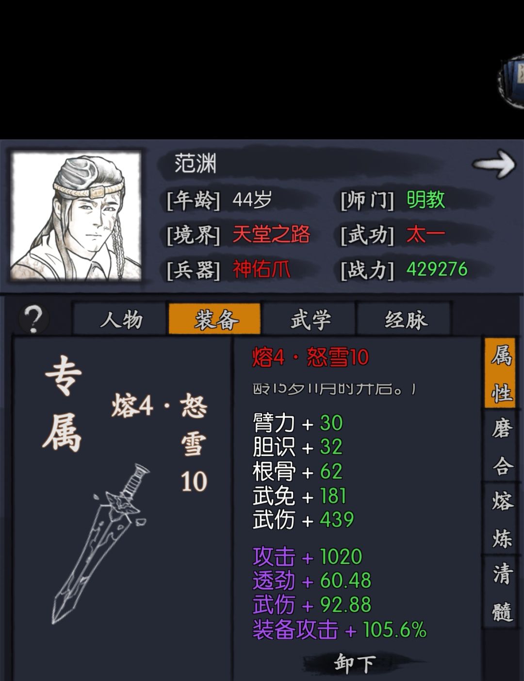 1.属性,高武伤高透高攻击,然后就是暴击和血。这个侠客较为复杂,各种流派实在太多,比如高防御的范,高爆免的范,各种都有,在核心数据就是武伤透攻击基本达标后,其他属性就各花入各眼了,对了还有高速的版本,流派众多的一个侠客,各种流派都有他亮眼的表现。曾经大家卷武伤的时候,啥侠客都有惊鸿一瞥,何,灵儿,小林子,武伤狼和云,田。大浪淘沙,现在最尖端的武伤我看来只有范跟萧瑟了,称其为遗响的原因则是范的用处更为广泛。